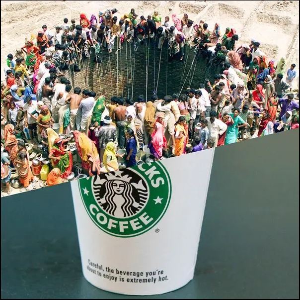 Ce contraste visuel crée un choc immédiat pour le spectateur. En une seule image, l’artiste met face à face deux univers qui existent simultanément mais qui ne sont pas vécus par les mêmes personnes.